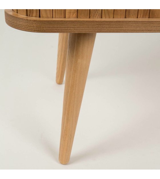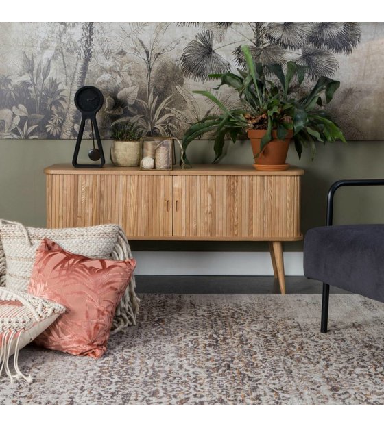 Le buffet de coiffure a un look rétro, mais un look moderne. En bois de frêne et avec 2 étagères en verre à l'intérieur. Celles-ci sont couvertes par les portes coulissantes, ce qui donne un joli détail. weitere Informationen...