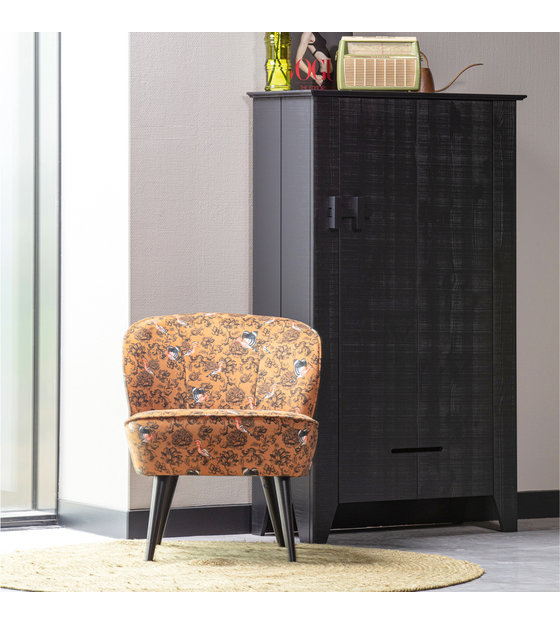 Un fauteuil en velours élégant et confortable avec des pieds en bois de bouleau noir. Nous aimons ça! Sara a un siège merveilleusement confortable et est disponible en différentes couleurs. La série comprend également de jolis tabourets et bancs ! weitere Informationen...