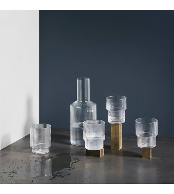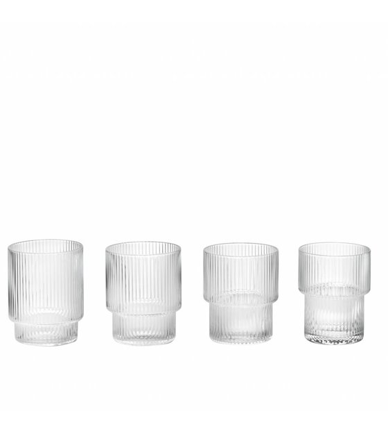 Cet ensemble de quatre verre soufflé à la main se caractérise par une surface rainurée bien. Les puits verticaux offrent une apparence de haute qualité et des formes géométriques fournissent dynamique entre les verres. weitere Informationen...