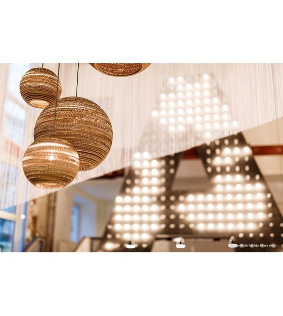 Nous aimons ces lampes par Pantalon gris. Cette lampe brun en carton recyclé est un vrai eye-catcher! Cette lampe suspendue Lune est particulièrement léger agréable et adapté pour la maison, mais aussi pour l'hospitalité! weitere Informationen...
