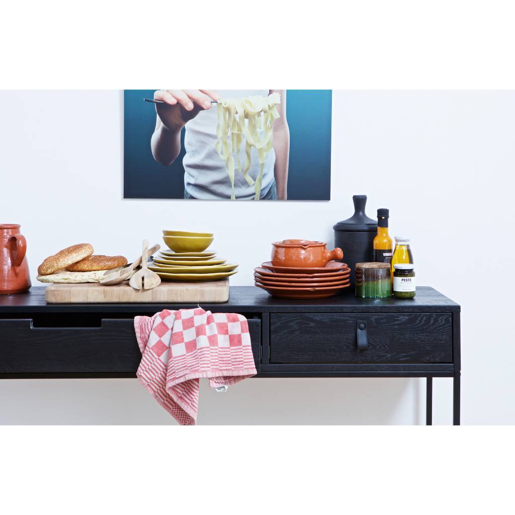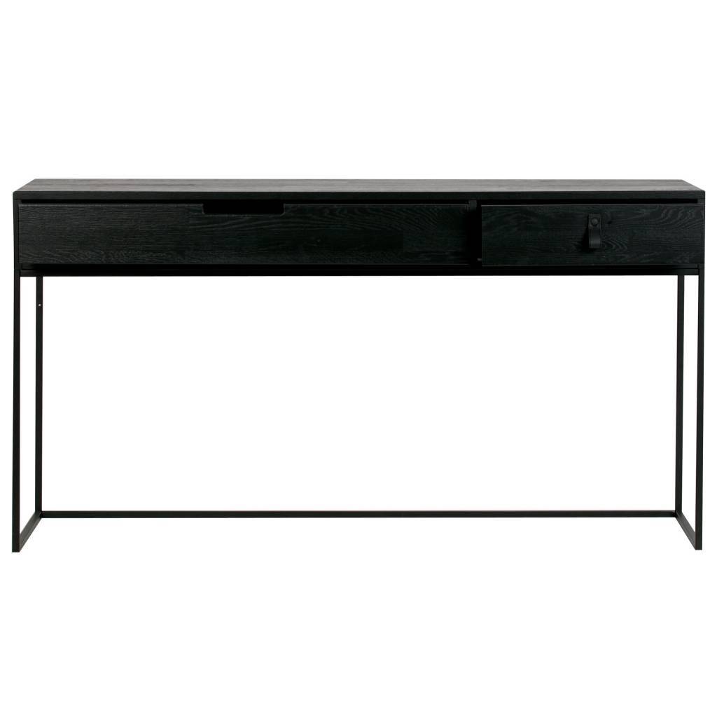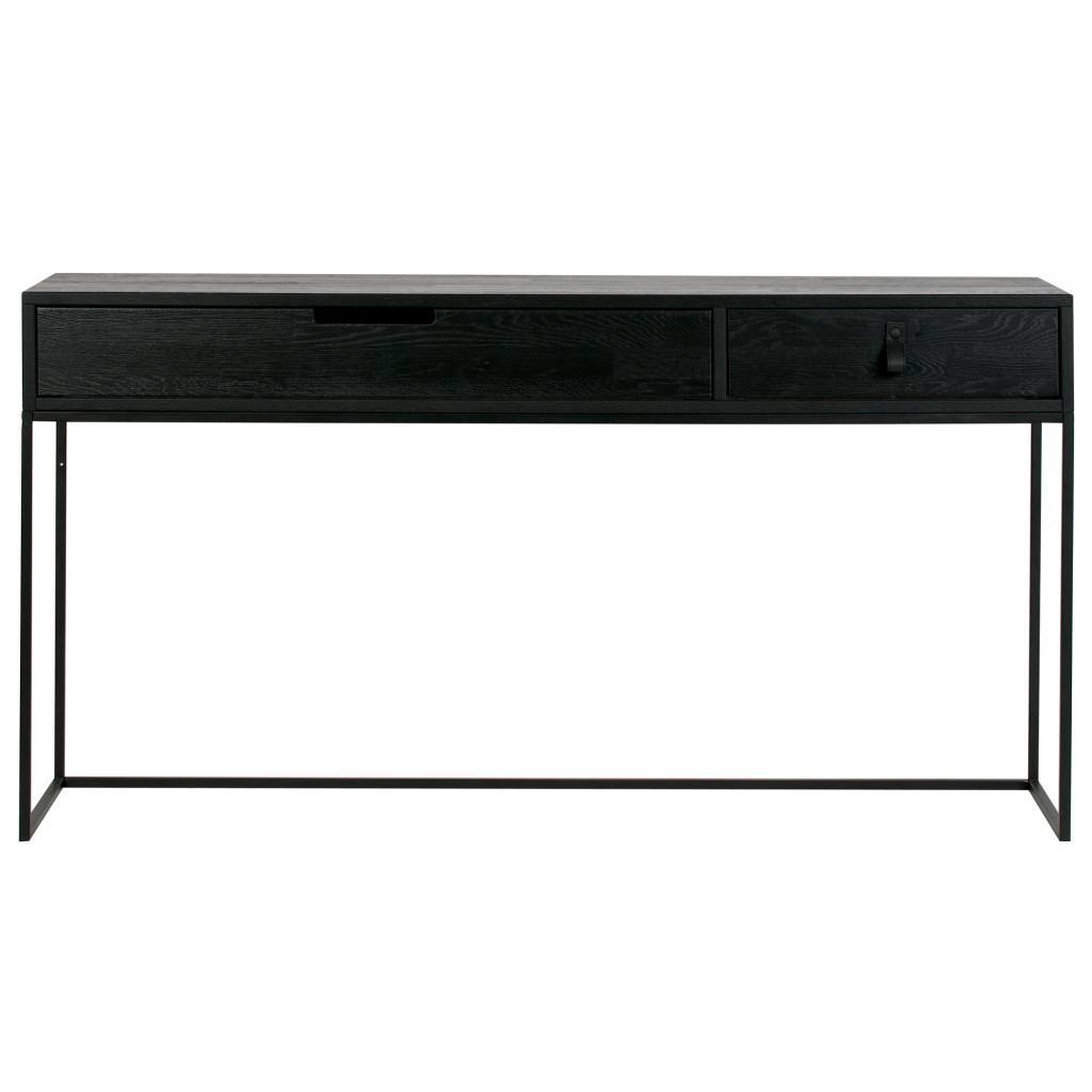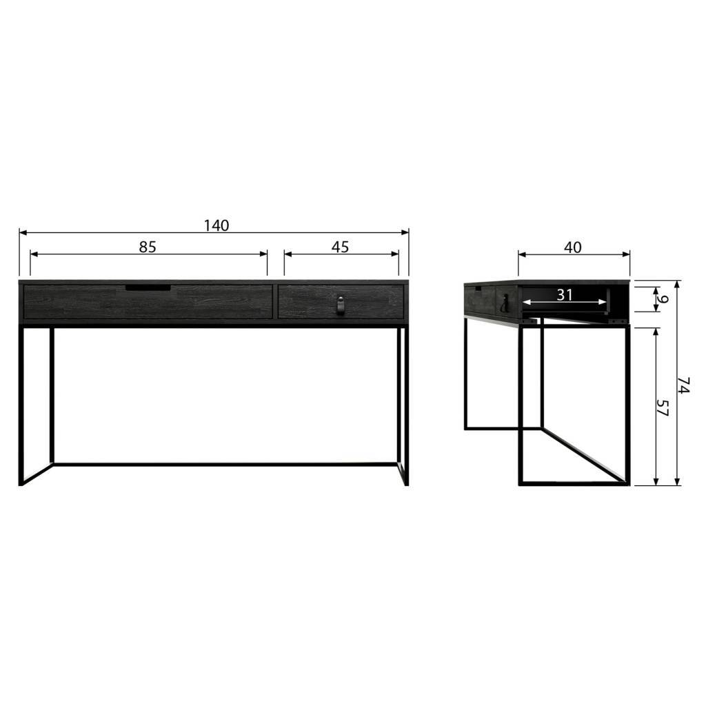 La table d'appoint WOOOD Silas [FSC] a un look moderne et constitue un bel ajout à votre intérieur. L'élément supérieur en bois de la table d'appoint SILAS a une hauteur de 16 cm avec une surface brossée, qui est peinte en noir la nuit. La table d'appoint a 2 tiroirs. 1 tiroir large avec évidement comme poignée et 1 tiroir plus étroit avec poignée en cuir. Le cadre est en métal et peint en noir. Le cadre a une épaisseur de 15 mm. La table d'appoint Silas a une hauteur de 74 cm, une largeur de 140 cm et une profondeur de 40,1 cm.