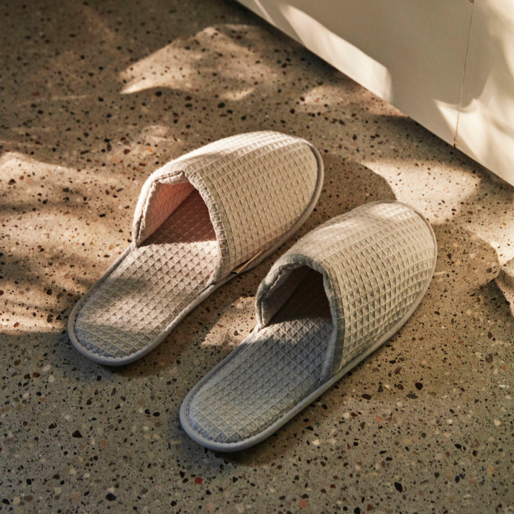 Les chaussures gaufrées de Hay sont faites de coton doux et absorbant avec une structure gaufrée tridimensionnelle. Ils ont une semelle en caoutchouc antidérapante et sont disponibles en une seule taille. Agréable à combiner avec le peignoir! weitere Informationen...