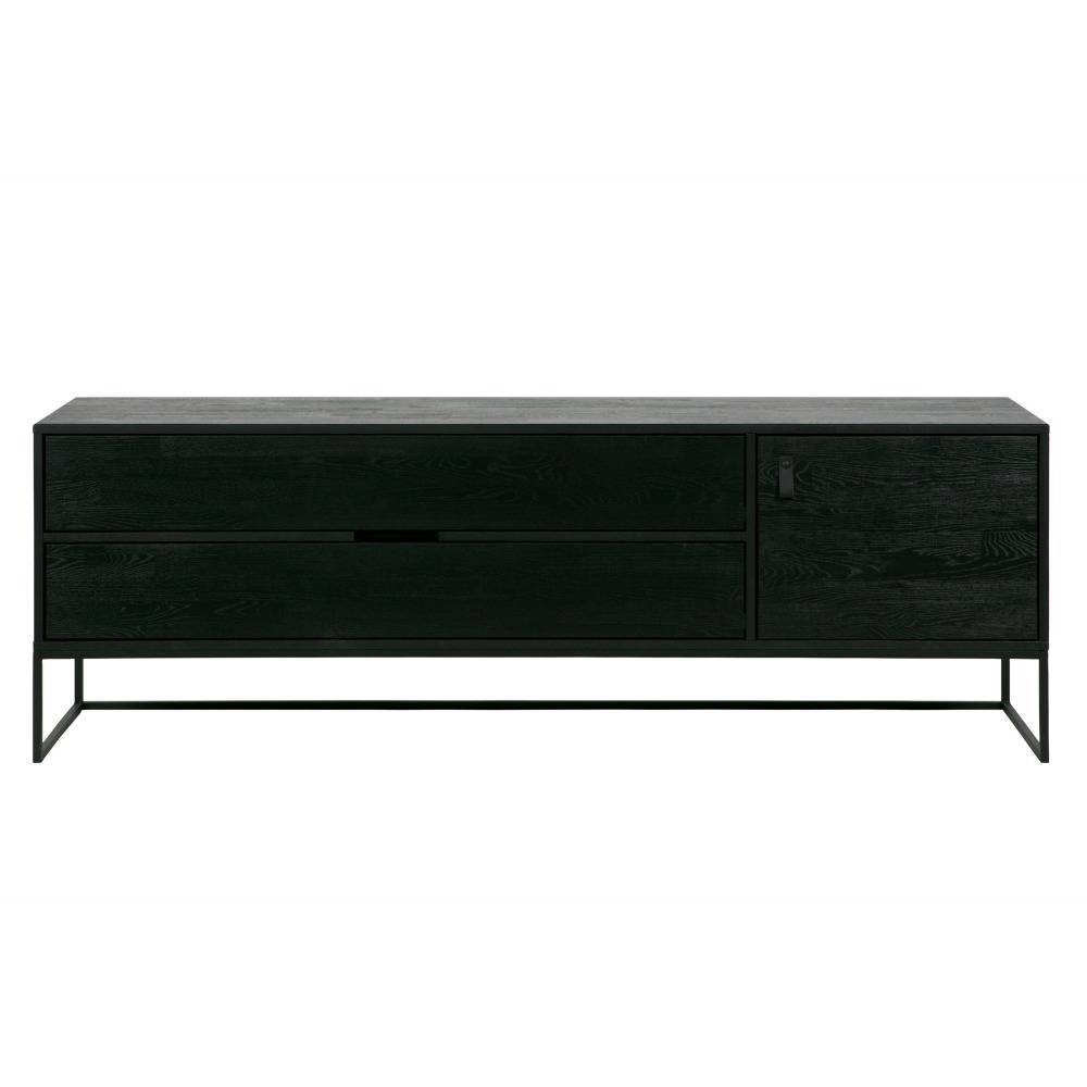 Le mobilier de télévision Silas a une hauteur de 60,5 cm, une largeur de 180 cm et une profondeur de 44 cm. Les deux tiroirs ont une largeur de 121 cm et une hauteur de 13 cm. Le meuble, du côté droit, a une étagère et la porte de ce meuble a un morceau de cuir comme poignée de porte. Les dimensions de cette pièce sont (HxL) 41x50 cm.