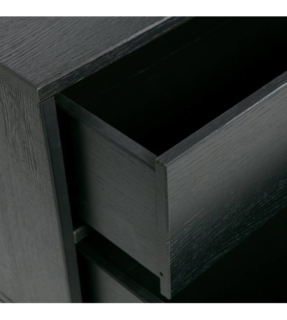 WOOOD Le meuble pour téléviseur Silas [FSC] a une apparence moderne et offre un espace élégant pour votre téléviseur. Le mobilier de télévision Silas est fabriqué en chêne brossé peint en noir nuit. Le bois brossé a un grain de bois accentué et une surface inégale. Les pieds (H: 20 cm) et les supports sont en métal et peints en noir.