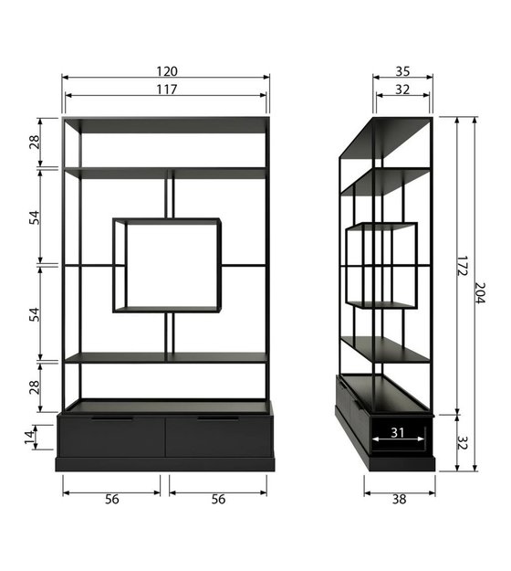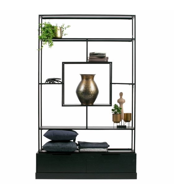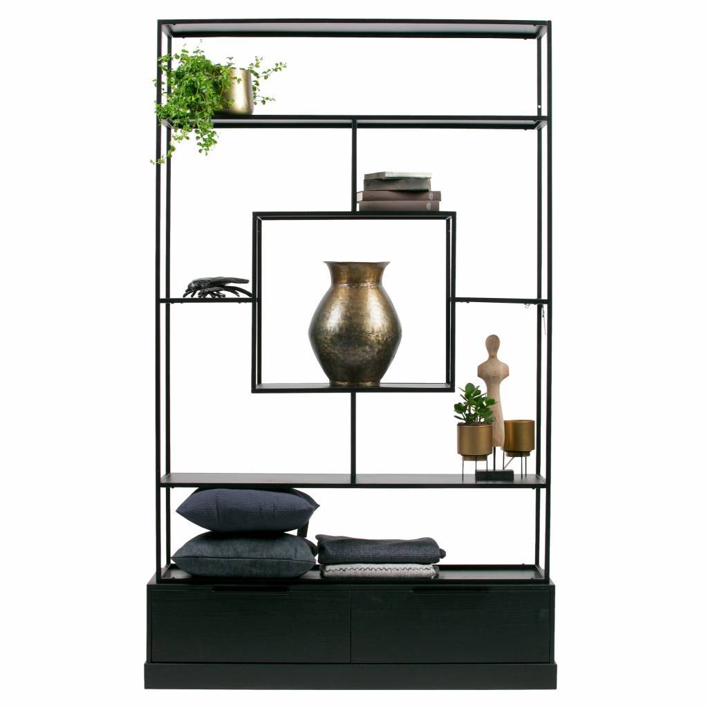 Con il mobile in metallo laccato nero Fons, dimensioni (HxWxD): 204x126x38 cm, hai un mobile alla moda e contemporaneo per la zona giorno e di lavoro. Il vassoio Fons del marchio WOOOD Exclusive è costituito da un telaio in tubo di metallo verniciato nero, combinato con due cassetti laccati neri in legno di pino. Al centro c'è un grande compartimento quadrato, nel quale puoi mettere un vero colpo d'occhio! È possibile collegare il cabinet Fons al muro o posizionarlo come divisorio.