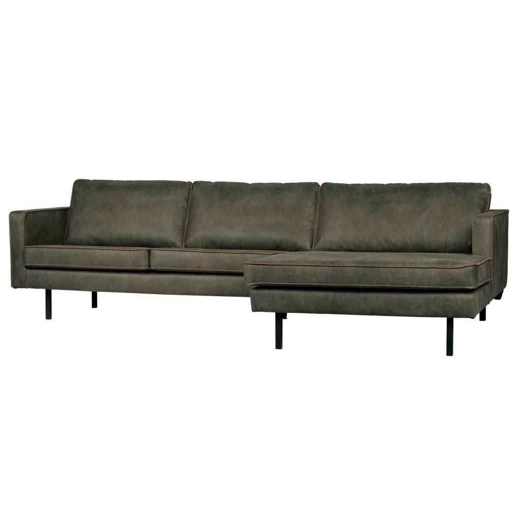 Il programma di sedute Rodeo del marchio BePureHome è moderno, robusto e contemporaneo. Questo divano chaise longue sulla destra è generoso, offre molto spazio per sedersi e presenta una resistente pelle riciclata in tessuto. La struttura sottile e i cuscini ampi rendono il divano discretamente visibile nel soggiorno.