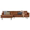 Il programma di sedute Rodeo del marchio BePureHome è moderno, robusto e contemporaneo. Questo divano chaise longue sulla sinistra è generoso, offre molto spazio per sedersi e presenta una resistente pelle riciclata in tessuto. La struttura sottile e i cuscini ampi rendono il divano discretamente visibile nel soggiorno.