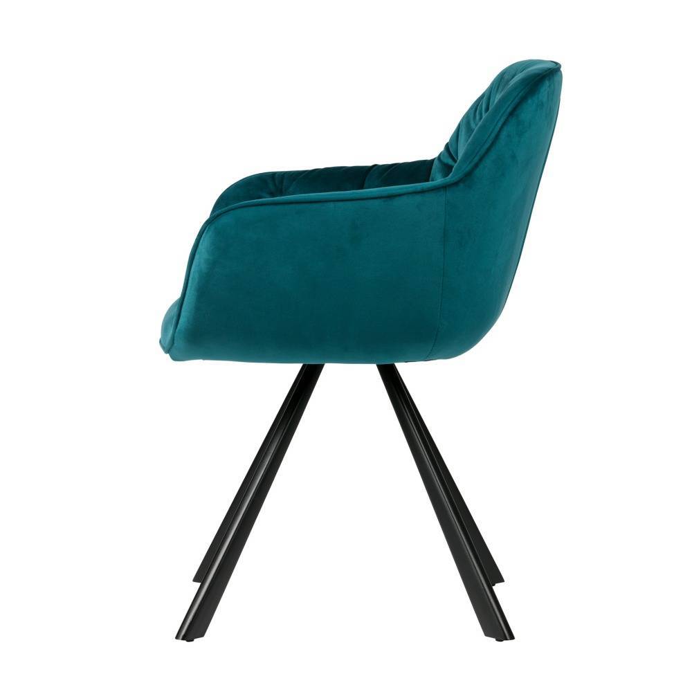 WOOOD Elaine dining chair è una sedia da pranzo elegante con una parte seduta, che è decorata in un bellissimo tessuto di velluto (100% poliestere). I braccioli e lo schienale sono abbottonati. Le gambe sono in metallo e dipinte di nero.