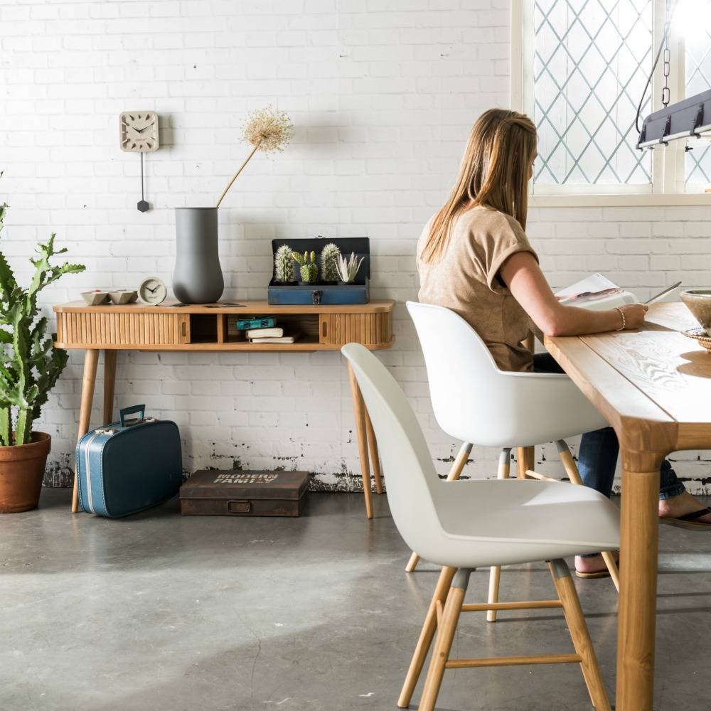 Il tavolino da barbiere ha un aspetto retrò ma un aspetto moderno. Il tavolo è realizzato in legno di frassino e ha sotto lo spazio di archiviazione della piastra. Si apre con porte scorrevoli, che bel dettaglio! weitere Informationen...