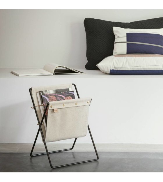 Il portariviste da ferm LIVING combina materiali moderni con l'estetica d'epoca. Lo stand robusta tela è fissata con cinghie di cuoio su un telaio metallico verniciato a polvere. weitere Informationen...
