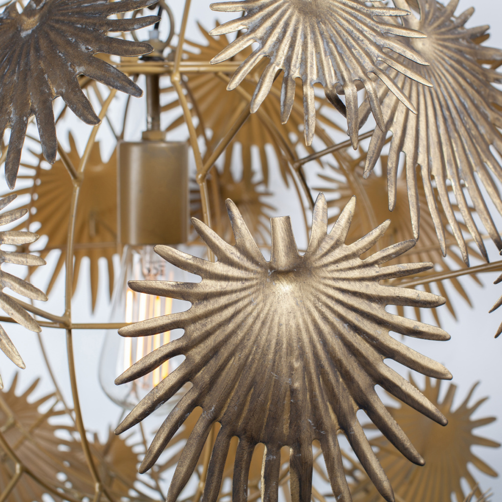 Che sia accesa o spenta, la lampada a sospensione Atom è una vera opera d'arte. La lampada è composta da tante foglie di palma in metallo che insieme formano un'elegante sfera. E quando li accendi, puoi goderti una luce particolarmente giocosa. Che atmosf weitere Informationen...