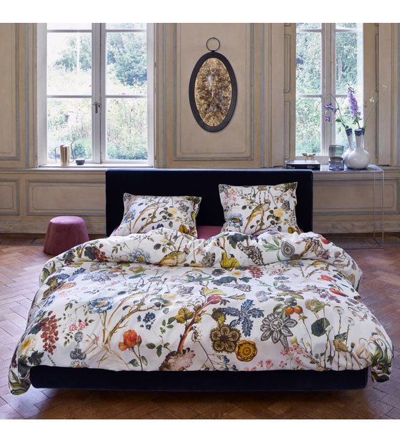Questo copripiumino Xess di Essenza sembra provenire da una fiaba. I tanti fiori, la zucca, l'uccello e persino un gioiello ti fanno dormire come un principe o una principessa. Le tubazioni in bronzo li completano. weitere Informationen...