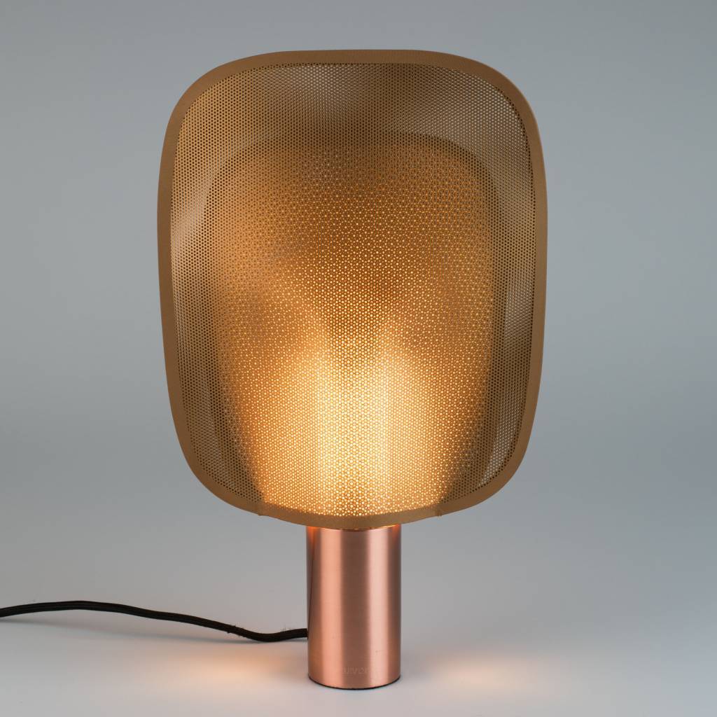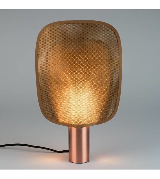 Questa lampada da tavolo Mai van Zuiver è una vera immagine. Quando accendi la lampada, attraversi il foro del paralume uno speciale effetto luminoso. La lampada è realizzata in metallo ramato. weitere Informationen...