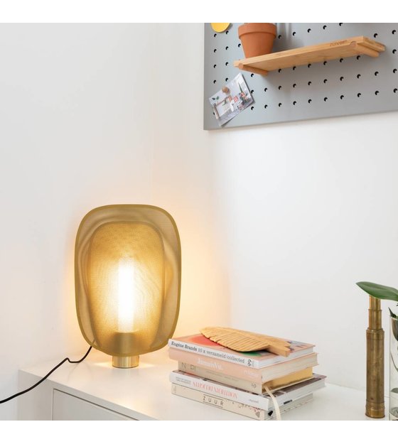 Questa lampada da tavolo Mai van Zuiver è una vera immagine. Quando accendi la lampada, attraversi il foro del paralume uno speciale effetto luminoso. La lampada è realizzata in ottone-metallo dorato. weitere Informationen...