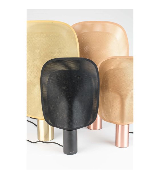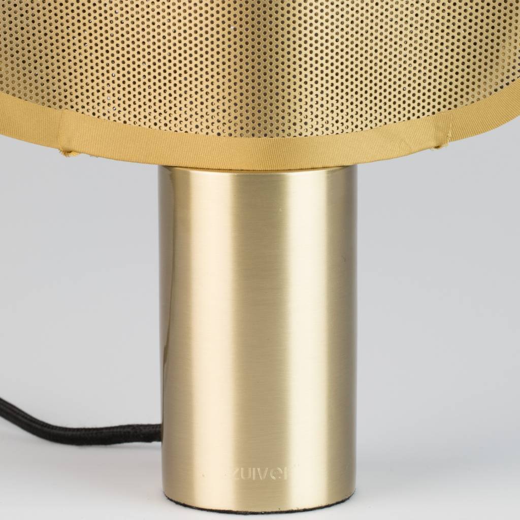 Questa lampada da tavolo Mai van Zuiver è una vera immagine. Quando accendi la lampada, attraversi il foro del paralume uno speciale effetto luminoso. La lampada è realizzata in ottone-metallo dorato. weitere Informationen...