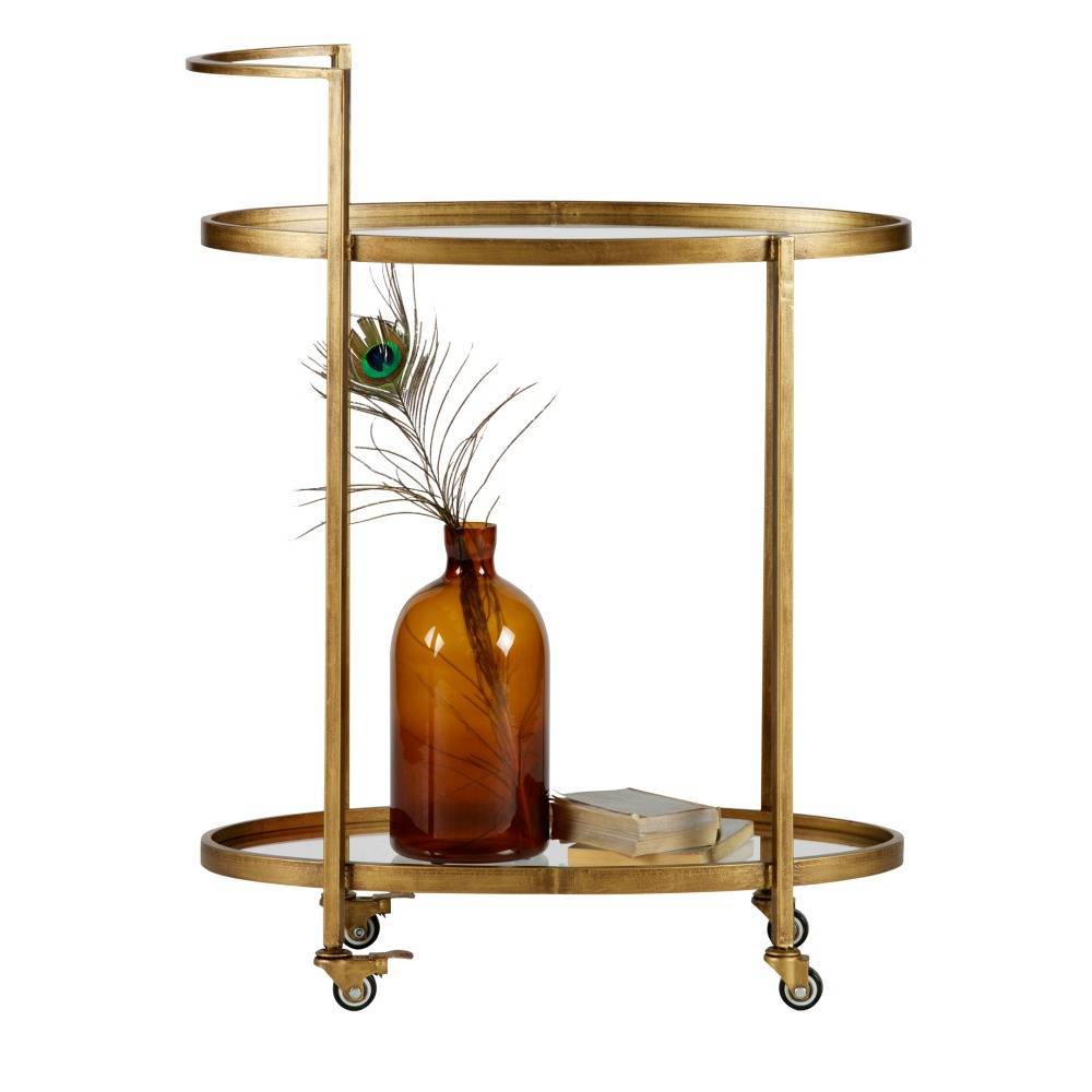 Il carrello di spinta BePureHome dà al vostro salotto un aspetto lussuoso! Il carrello ha un telaio metallico di colore oro con due ripiani in vetro. A causa delle ruote del carrello di spinta può essere facilmente regolata. weitere Informationen...