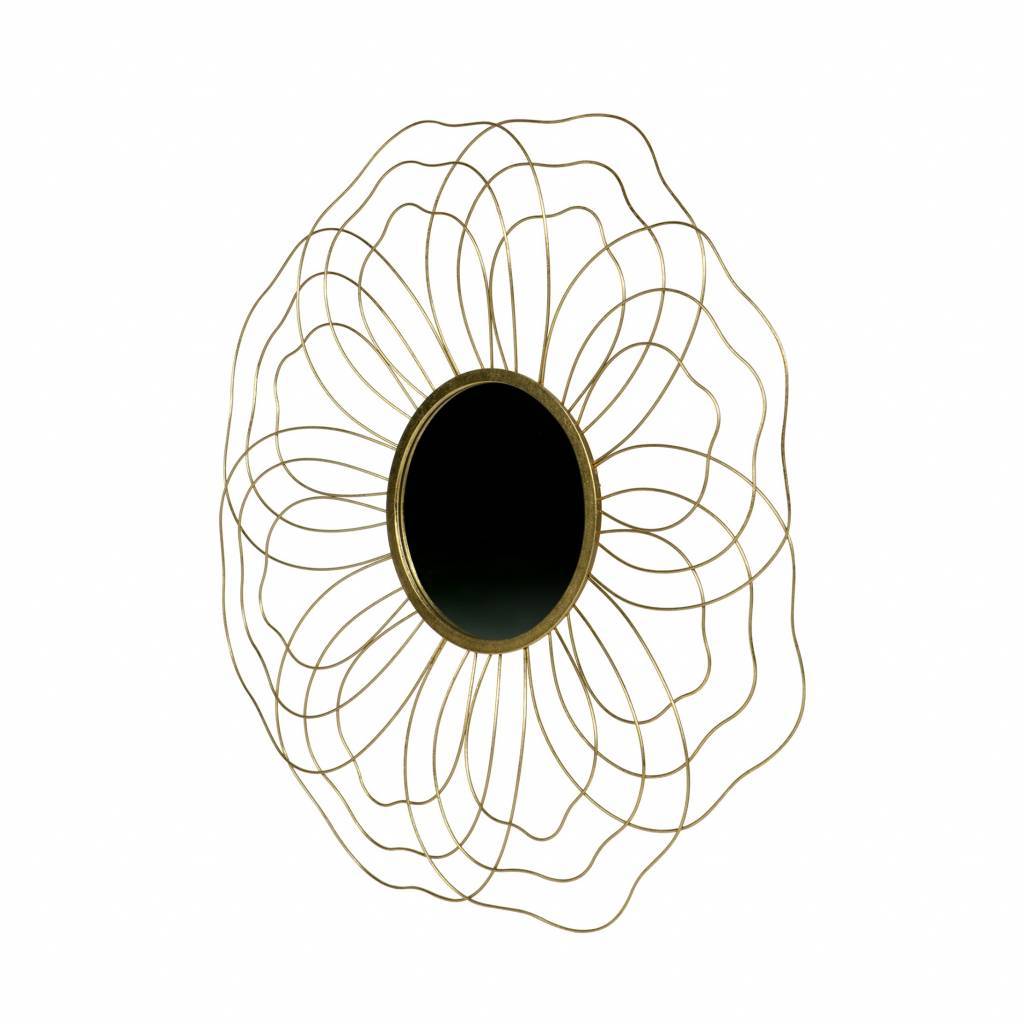 Lo specchio bello L è un'aggiunta elegante alla parete. Il bellissimo bordo è realizzato in metallo (ferro) nel colore ottone antico e questo bordo conferisce a questo specchio qualcosa di speciale. Lo specchio ha un diametro di 88,5 cm e uno spessore di 5,5 cm. La parte dello specchio ha un diametro di 27,5 cm.