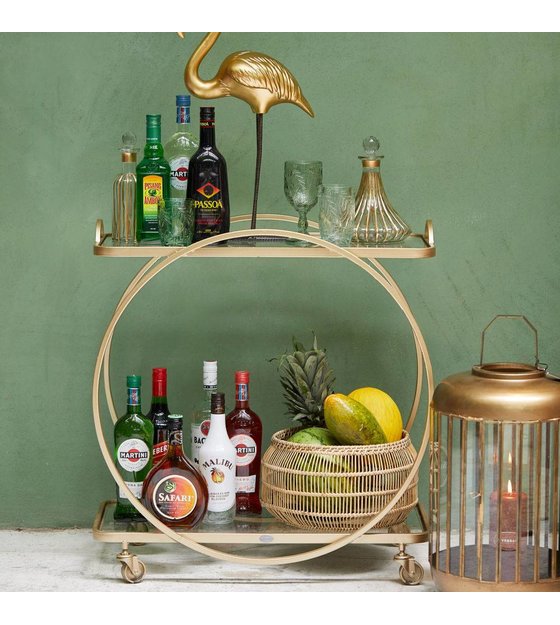 Metti le tue bevande preferite su questo elegante tavolo da bevande d'oro. Realizzato in metallo con due lastre di vetro, il tavolo è anche montato su ruote. Certo, non devi usare il tavolo delle bevande solo per le bevande. Come tavolino è anche molto di weitere Informationen...