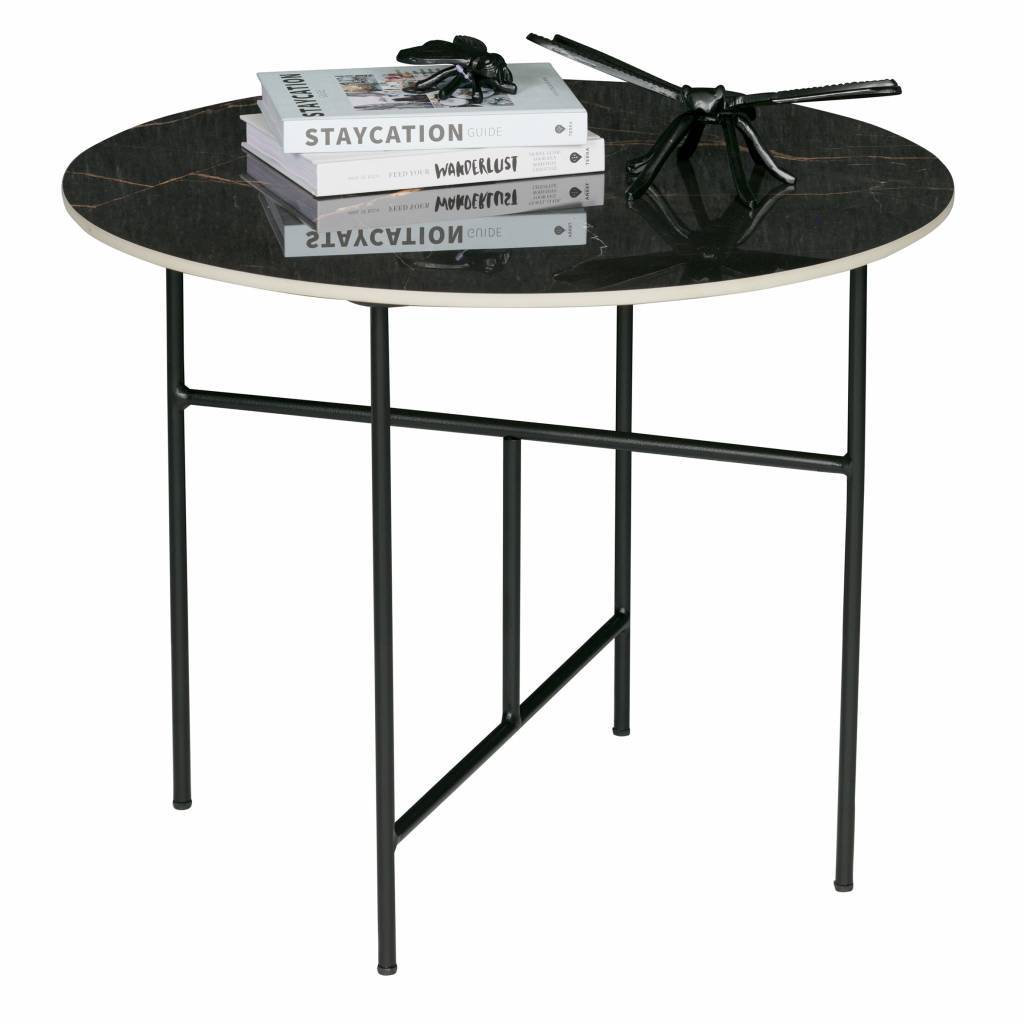 Un vero colpo d'occhio in ogni interno! Il tavolino Vida del rivestimento interno WOOOD ha un aspetto trendy e lussuoso, dovuto alla combinazione della lastra di porcellana nera con l'aspetto del marmo e della sottile base in metallo nero. Il telaio in metallo nero può essere fornito come forbice su richiesta, in modo che sia pieghevole. Questo facilita il movimento del tavolo. Il piatto di porcellana in aspetto marmo rende ogni tavola unica.