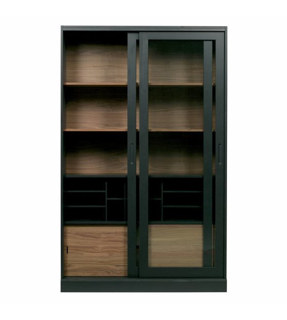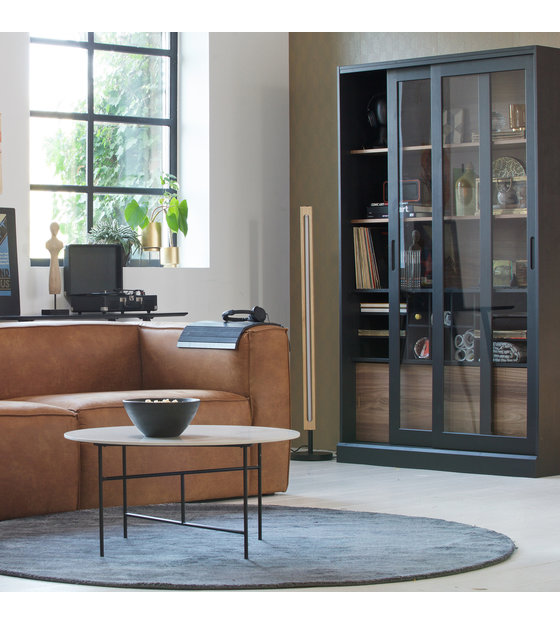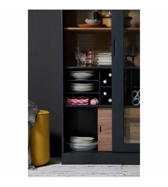 La vetrina di James ha un bellissimo stile rustico con un bordo robusto ed è realizzata in legno FSC. Ha spruzzato in un colore nero. Le parti nere sono in legno di pino e le parti in legno sono in rovere (MDF, non trattato). L'interno dell'armadio ha ancora il colore naturale del legno. La distanza tra le tavole è 33,3 cm. Questo mobile ha 3 ripiani e piccoli ripiani neri per un sacco di spazio di archiviazione. Presenta i tuoi articoli per la tavola o il vetro preferiti e abbinalo con bellissimi accessori. Questo cabinet è fornito in kit con un chiaro manuale di installazione.
