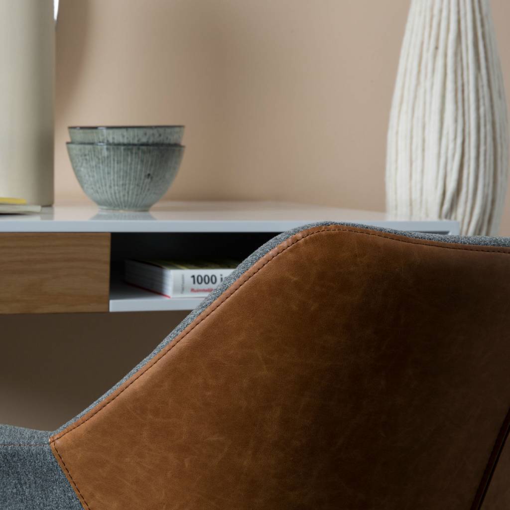Questa sportiva Sedia con braccioli di Zuiver ha una superficie di seduta materiali. Sul sedile e lo schienale, c'è un colore di finta pelle. La sedia pranzo Doulton ha un Stahlramen nero ed è molto confortevole. weitere Informationen...
