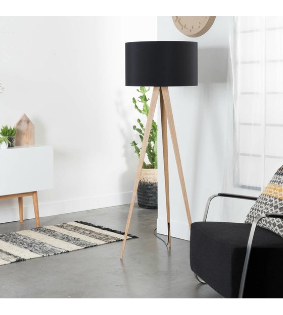 STEHLAMPE STATIV NATURHOLZ SCHWARZ 151X50CM...